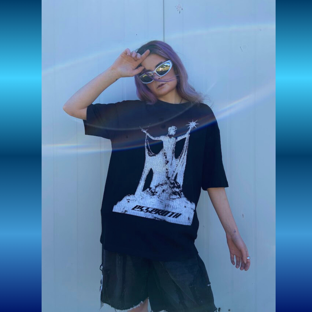The AZURA shirt is oversized and constructed from 100% heavyweight cotton, offering structure and presence. Like the stillness before transformation. Like moonlight on stone.